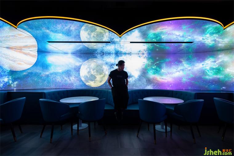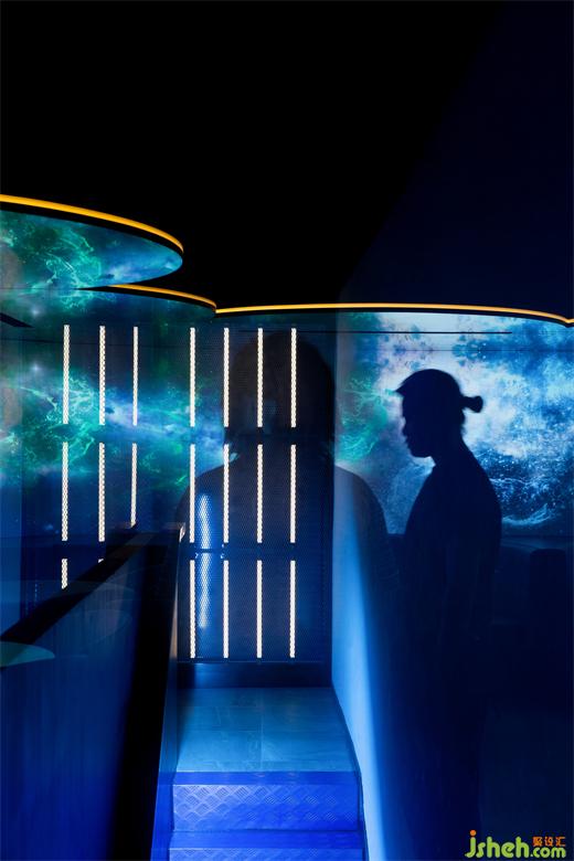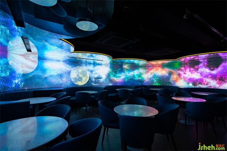 在这个125㎡的空间中,设计师运用玻璃、立体砖、灯管、LED电子屏等多元物料进行对比,酒吧设计构建出丰富的空间层次,让消费者可以体验一种交感幻象,以此回应赛博空间的复杂性。