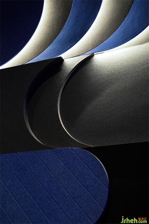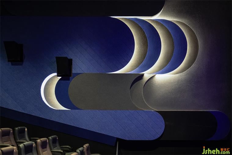 影厅依然沿用水滴元素,蓝色和紫色的造型墙,将我们的意识与潜力带到更高的境界。从探索新科技与更浩瀚的银河,到艺术性的表达与精神思考,直觉式的紫色照亮通往未来的道路。