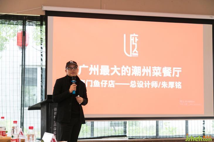 随后,广州尤度设计有限公司首席设计师朱厚铭老师分享了《用战略思维驱动空间设计 为品牌建立认知优势》的演讲,他认为空间设计要有战略思维作基石,战略就是创建一个有利的认知优势。而心智认知在战略中占据重要地位。如何做到成为企业客户的更有价值的伙伴?关键在于了解和获取潜在顾客的选择理由。只有敲开消费者的心智之门,设计才能被顾客所接受。经营的本质是建立认知、甚至是围绕认知做经营。问题都在内部、皆因内部思维所致、答案都在外部、都在潜在顾客的认知那里。因此,设计师可以从现有的顾客里去找寻答案:选择你的理由是什么?他们对你的评价如何?如果没有你这些顾客会选择谁?设计师做空间设计时,应该更关注消费者的认知。他坦言“我们真正做一个好的东西,它的评判标准不在设计师这边,也不在企业这边,而在于我们潜在顾客的认知是怎么样的。”他的设计依据是消费者的认知加上品类特性,他说“商业空间设计不仅仅要创意,更重要的是呈现信息,呈现品类的信息,获得潜力顾客对它的关注。”消费者的思考模式是先认知后选择,而且是潜在认知在指导绝大多数决策。所以设计要顺应心智认知规律。怎样才能设计更好的品牌商业空间?应从消费者的认知角度出发,基于消费者是用品类思考的。竞争的本质不是产品之争而是认知之争。只有占据消费者心智,品牌才能被顾客所选择。尤度的方法论为基因能力,品类特性,购买理由,品牌符号,空间设计。他用空间设计开创蓝海战略:减少-剔除-增加-创造。接下来,朱厚铭老师演示海门鱼仔店案例,用具体的项目跟大家分享了他的设计逻辑与设计观。