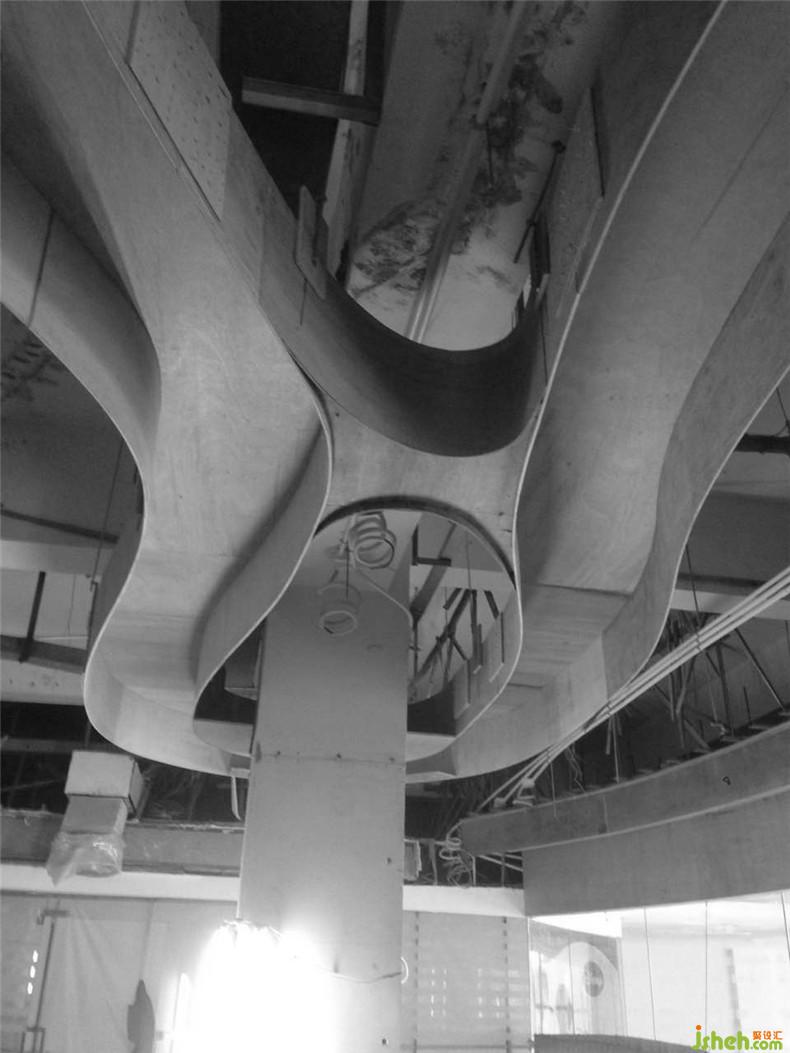 With the traditional Chinese cursive for the blueprint, with bamboo for ink, in space to write, the formation of a unique space device art, rough and publicity to the wooden grille with the formation of straight lines and straight contrast Space has a richer sense of hierarchy and rhythm.