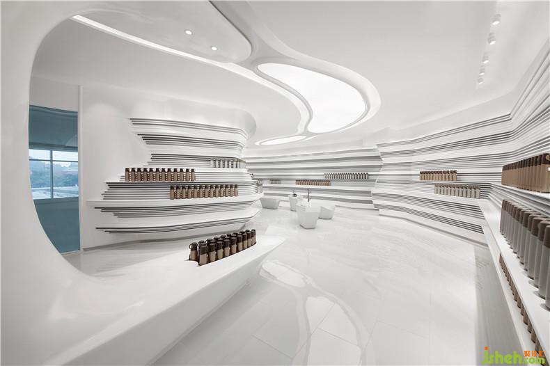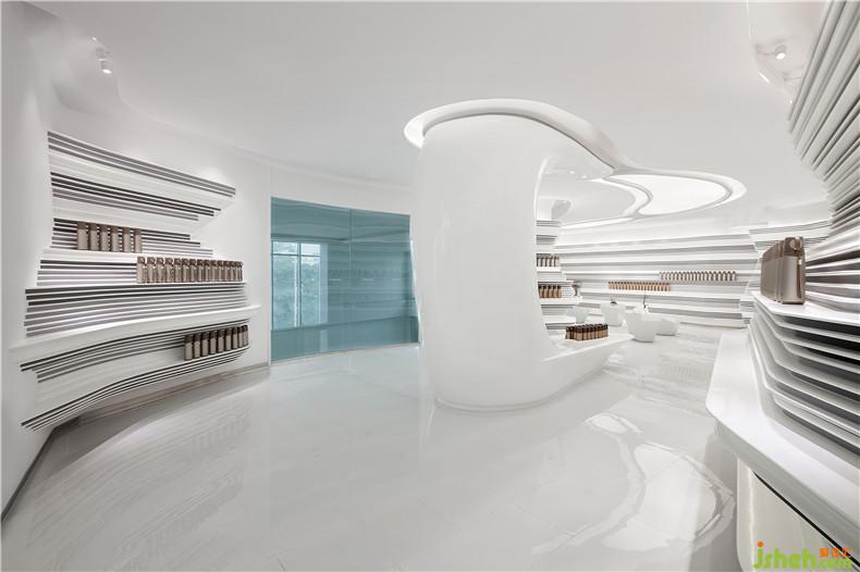整个展厅灵感来源于设计师对大自然生活的体验与感恩,墙身层层的凹凸肌理以及颜色变化,如同岩石经过风化的洗礼,创造出现代感与未来感等不一样的视觉感受。弧形、流线型把展柜与空间有机的结合,使整个空间流畅、灵动且具有张力