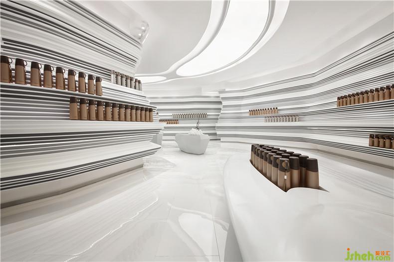 The inspiration of the whole exhibition hall comes from the designer's experience and appreciation of life in the nature. The concave and convex of the wall's surface, as well as its color variation, are like the weathering effects of rock, providing us with a different visual feeling of modern and the future. Curves and streamlines combine showcases with space organically, making the entire space smooth, agile and tense.