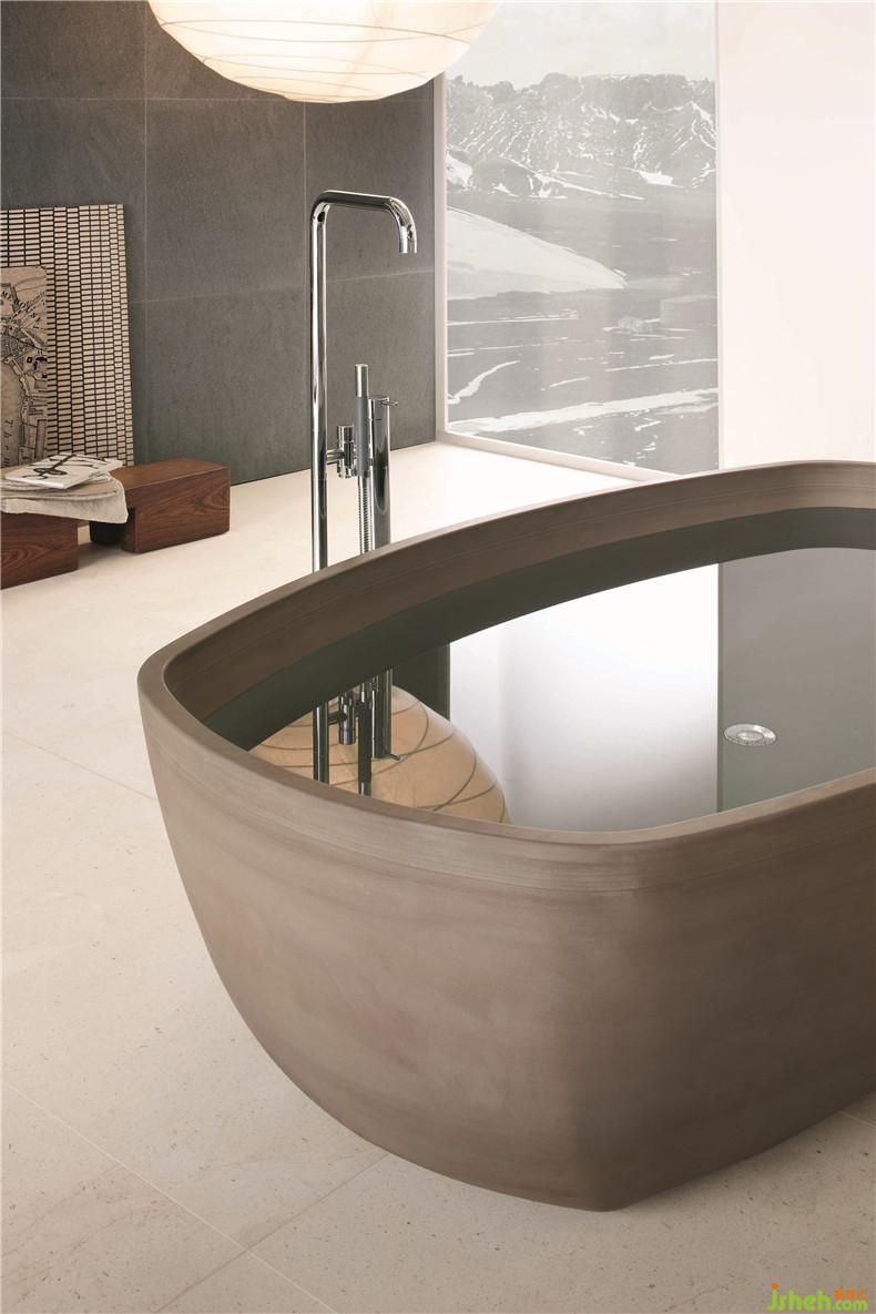 Inkstone bathtub, Sand Brown stone- Earth tiles and flooring.