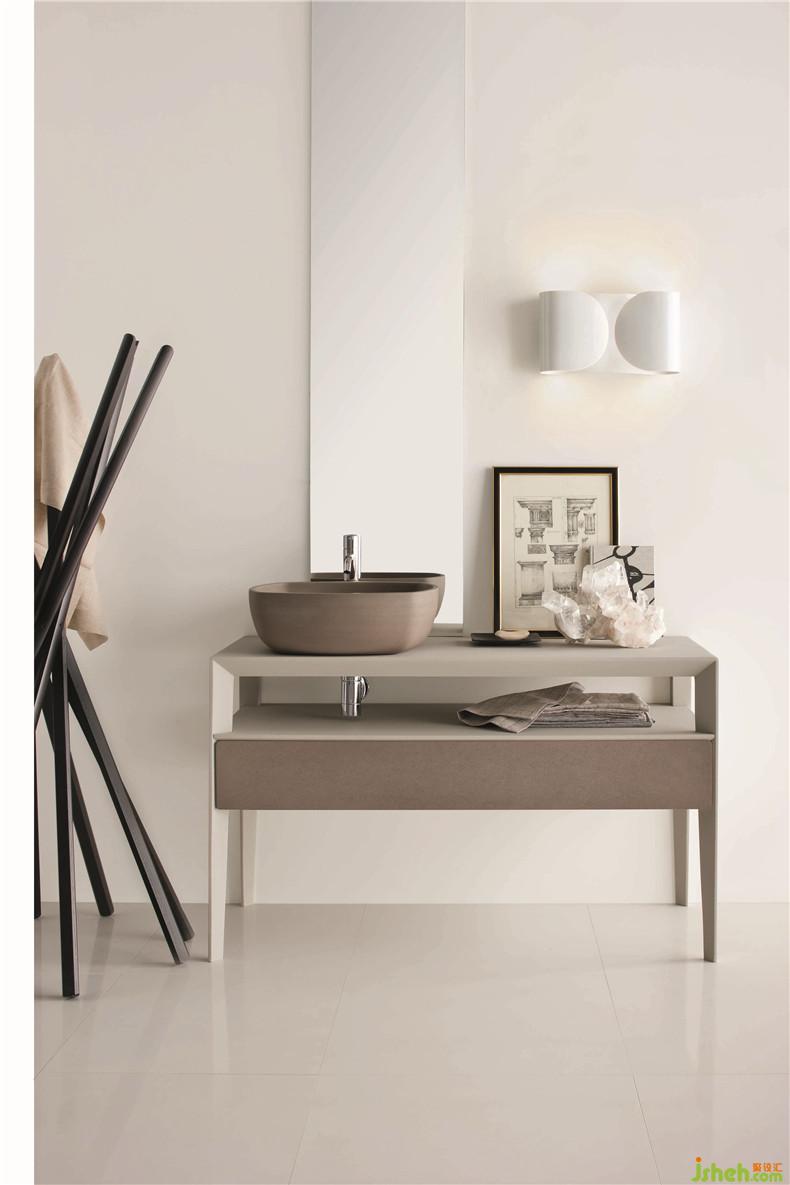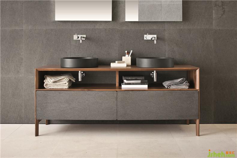 Inkstone wash-basin, Sand Brown stone and Neos furniture, Ice silk finishing, front Sand Brown stone