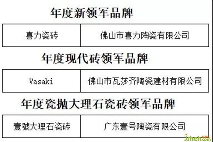 年度新领军品牌/年度现代砖领军品牌/年度瓷抛大理石瓷砖领军品牌