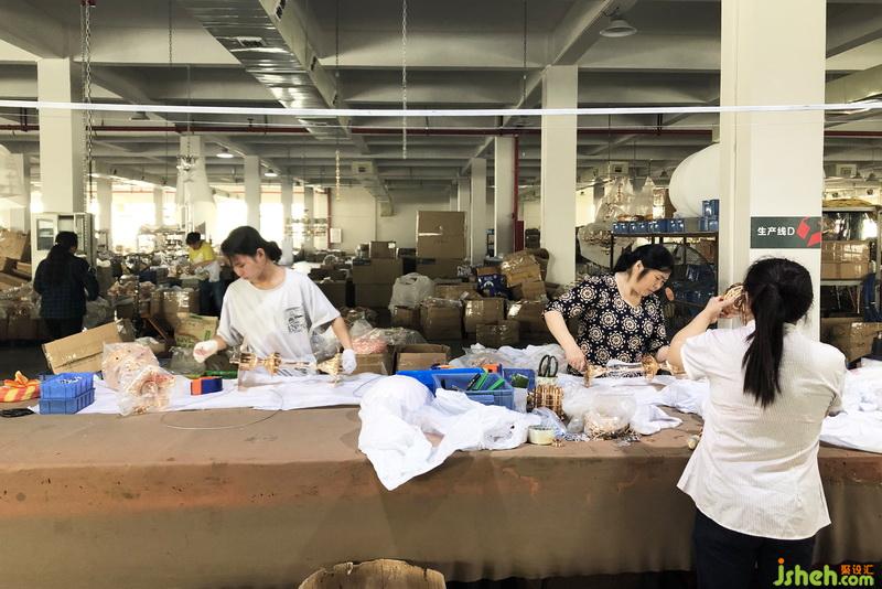 参观的过程中,金枝玉叶水晶灯工厂的厂长亲自解说了灯饰制作的精密过程并带我们区分了灯饰材料的优劣。