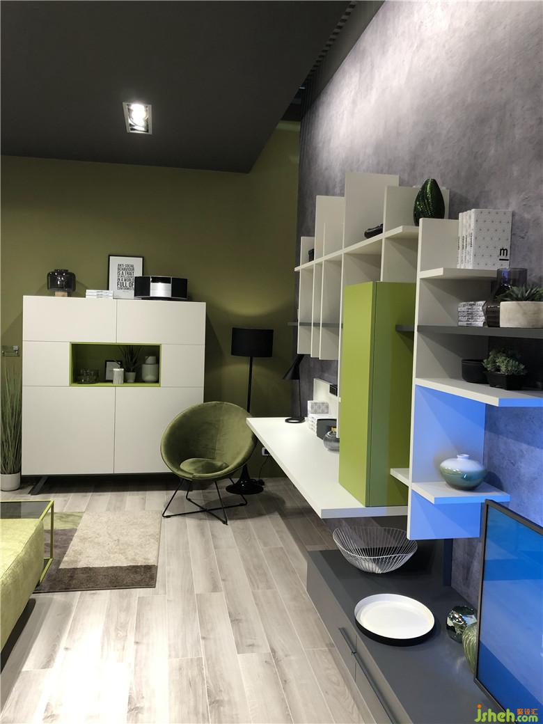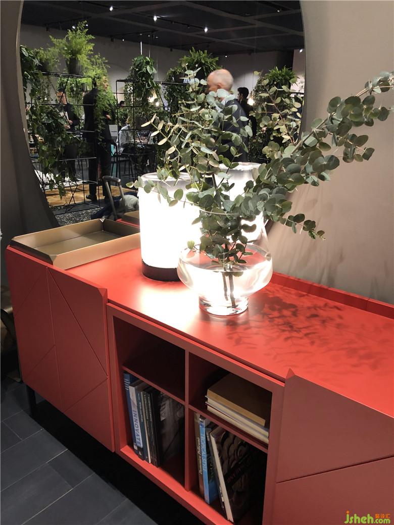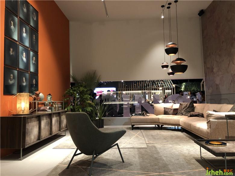这是一个色彩风向标,往展馆里随处一望,沙发、座椅、背景墙、柜子、抽屉、吧台,间或被珊瑚橙色和红色占领,丰富多彩的缤纷色系也让整个展馆弃满了生机勃勃的景象。
