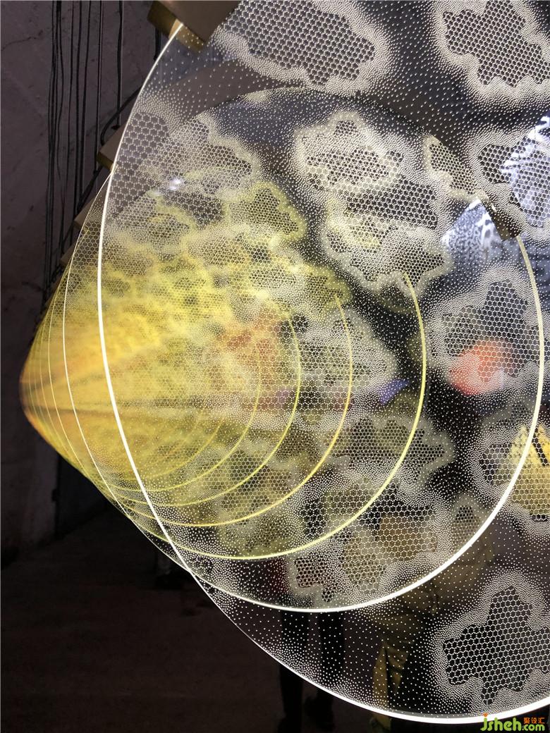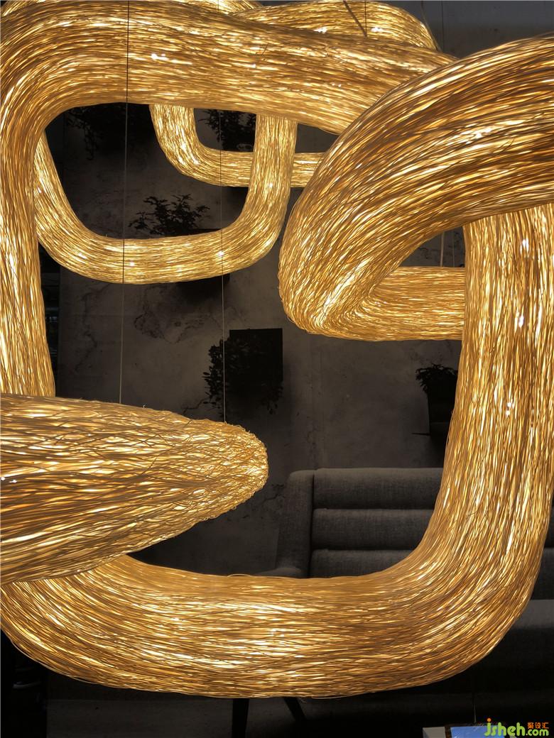 灯具更讲究美学概念,它不仅作用于照明,还可以装点生活空间。灯具造型色彩绚丽,线性、块面、金属与皮料、金属与木和自然材质的结合刚柔并济,吊灯的款式颇为多样,营造出霓虹般的浪漫景致,集趣味性和功能性于一体,体现出可持续性、以人为本的美学特质。
