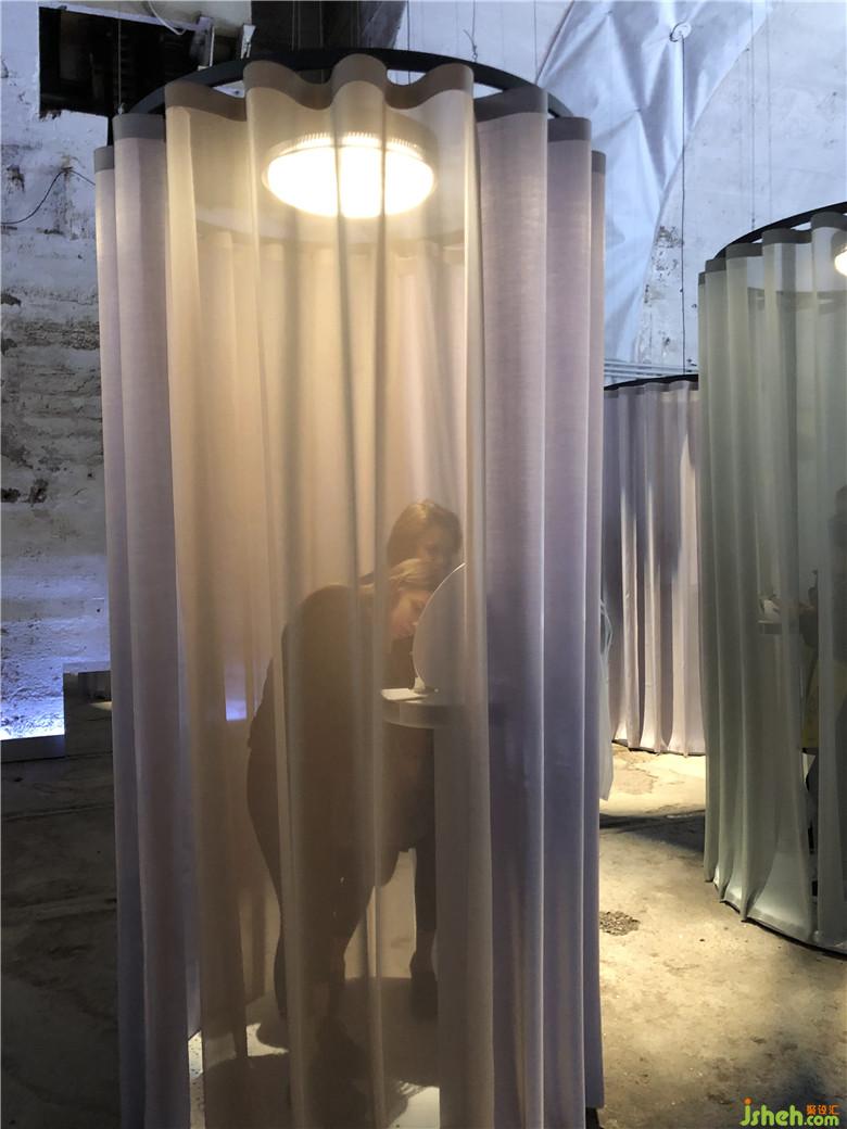 展览“ 告诉我更多”(Tell me more)是一件沉浸式互动装置。这个设计意在探讨把人与人之间相互连结在一起的情感。参展者都可以加入,每个参与者首先会来到一个被透明薄纱包围的圆柱形小空间,任意回答此前陌生人提出的一个问题,并且用笔在空白卡片上写下自己想问的问题,留给接下来的参与者回答。之后,大家可以到另外的休息室和身边的人闲谈,参与者们都将在这里获得一场没有束缚的思想交流。