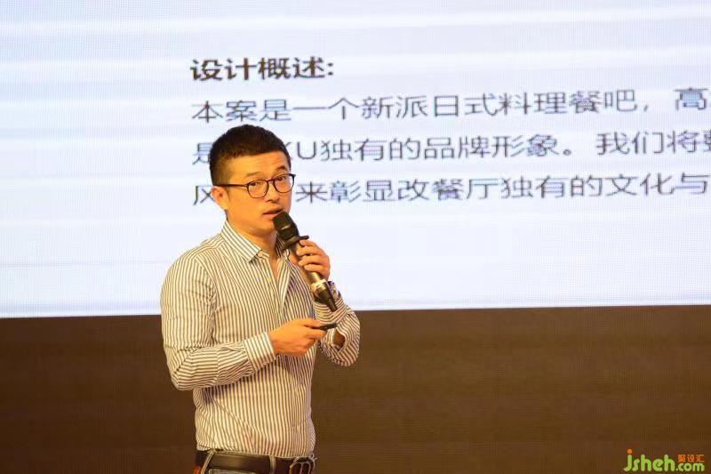 王锟老师展开了主题为《玩转设计艺术 · 释放年轻力量》的分享,王老师从餐饮空间的前期思考策划到设计考量到最终的项目落地,详细地向在场的设计师们分享自己的看法和观点。