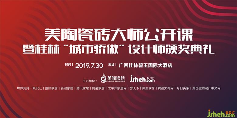 美陶瓷砖&聚设汇联合举办的【美陶瓷砖大师公开课暨桂林“城市骄傲”设计师颁奖典礼】将于7月30日下午1:30在广西桂林碧玉国际大酒店举行。