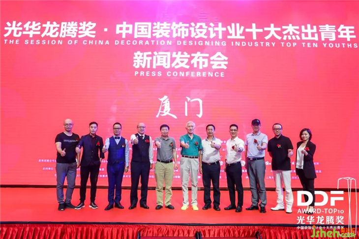清华大学资深教授、光华龙腾奖委员会主席、光华龙腾奖中国设计贡献奖金质奖章获得者柳冠中先生,厦门市工信局产业处处长叶怡锻先生,台湾著名建筑博士胡肇台先生,中国室内装饰协会设计师俱乐部秘书长、光华龙腾奖·中国装饰设计业十大杰出青年评审委员会秘书长张俊富先生,厦门市定制家居产业协会会长陈庆龙先生,厦门市室内装饰协会常务副会长兼秘书长黄剑瑶先生,厦门工业协会会长陈全志先生,厦门SKY设计总监袁济安先生,厦门妙迪雅克建筑装饰工程有限公司董事长肖妙恩先生,厦门意庐东方设计装饰有限公司设计总监王暖先生,深圳国际艺展意大利馆渠道负责人詹婷婷女士共同启动2019光华龙腾奖·中国装饰设计业十大杰出青年(厦门)新闻发布会活动。
