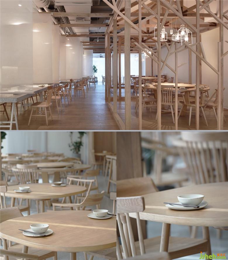 这是一个现代年轻餐厅的案例分享,餐厅设计餐吧的主人来自湖南,在京奋斗10年,本想在今年收拾行囊衣锦还乡,却因缘际会下开创了一个新餐饮品牌。也因此打消了还乡的念头,决定在北京迈向第二个10年,同时在北京CBD这个让所有人疯狂的地方,打造一个有妈妈的味道的温馨角落”雁舍”。所以利老师在做设计的时候让餐吧空间以雁巢为概念的来源,餐厅设计树林与鸟屋两个主题简约朴实的手法虚实表现在空间之中: 虚:大量抽象化的树枝形成了一片树林,分割了几个用餐区域,让人们有身处都市丛林用餐感受。实:在所有的实体墙面开出鸟屋形状的树洞,餐厅设计食客以鸟的视角透过这些鸟屋树洞看到树林,这会是一种特别的体验,餐厅设计有些鸟屋树洞则组成为书架。餐吧整体基调有着当代北欧设计的简约与朴实,这样的环境使人觉得是个咖啡西餐吧,实际上这里卖的却是在家常不过的中国湖南家庭料理,意味着这里的饭菜有家的味道,餐厅设计师希望藉由餐厅环境隐约透露出的北欧福利国度的安全感,在配有着妈妈饭菜香的家常不过美食,让在北京CBD精神紧张的人们放松。北京CBD每年来自各地的人们就如成群的大雁来此栖息,餐厅设计北京CBD这个让所有人带着梦想而来的地方,故乡家的味道正如它的名字”雁舍”一样。