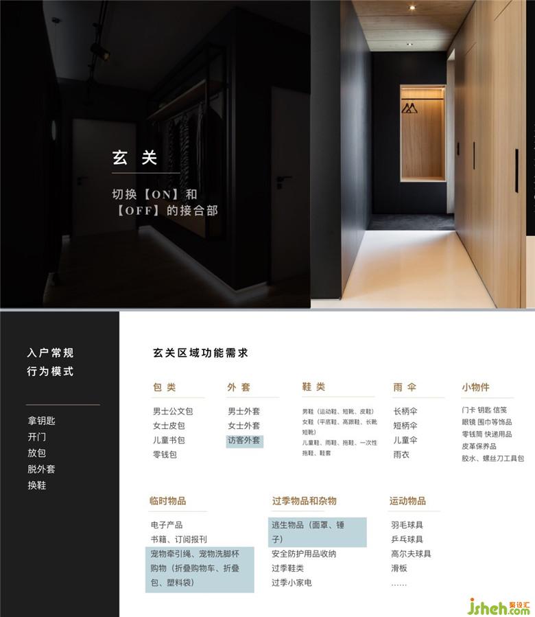 这样的话,会形成他这些动作的发生而产生的一些器物,比如进门要放包,这些包放哪里?进门可能要脱外套,外套放哪里?换鞋,鞋放哪里?通过这些器物,再推导到我们需要什么样的空间去满足这些器物。
