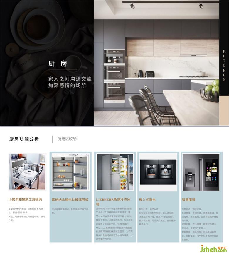 厨房是家人之间沟通交流并加深感情的区域,张老师表示在厨房的收纳需要划分为几个类别,分别是厨电区收纳,小家电和辅助工具的配置是打造美丽厨房必不可少的,嵌入式家电可以合理利用空间,嵌入式安装更能体现品味和个性,让甲方“爱上厨房”。清洁区的收纳也可以令家整体看起来干净舒服,让人更向往到厨房区域烹饪,张老师表示现代人越来越注重享受,水槽洗碗或嵌入式洗碗机的配备都非常重要。同时,一个家会制造非常多的垃圾,厨余垃圾要及时清理和妥善放置,所以垃圾管理也要做到位。烹饪区的收纳更要体现便利、实用,因为它会影响一道菜品的成品率,所以要加强锅具、餐具和调味品的收纳。可升降油烟机工作时油烟机自动升起吸排油烟,不工作时油烟机自动缩回台面里,让空间显得更大,让台面更显干净。