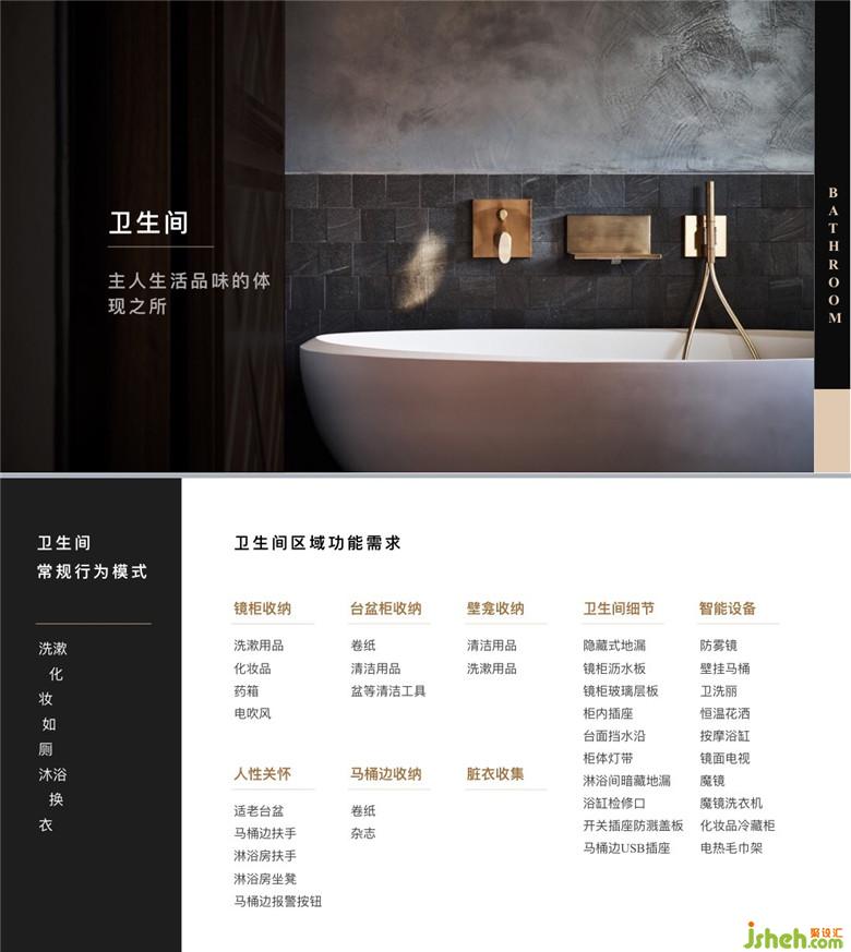 卫生间是体现主人生活品味的地方。张力老师表示镜柜内的玻璃层板能够防止发霉变形,有水渍更方便清理,层板柜适合收纳浴巾、毛巾等,易拿易放。壁龛、马桶边收纳可安装层板,方便放置小物品,也可与台面连接,拥有更多收纳空间,马桶边还可设计放置手机的架板,飘板上方设置USB插座,如厕轻松更自如。其次换洗衣物也要集中起来收纳,保持卫生间的干净整洁。张老师强调智能家具已经被广泛应用在家庭当中,卫生间又是最能体现主人生活品味的地方,所以更应该要多引入智能产品的应用,如防雾镜、按摩浴缸、冷藏柜等,由于现代女性对化妆品的追求,所以卫生间设置一个冷藏的小柜子,可以让女主人方便保存自己的护肤品和化妆品,满足女主人的需求,很多时候就满足了一个家的需求。如果家中有老人,那就要更多的体现人文关怀,增加适老台盆、淋浴房扶手和坐凳、紧急报警按钮等设备。