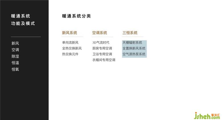 张老师表示要注重家的通风系统设置,打造一个健康的家才会越住越舒服。如设置新风系统,强制排风,自然送风。排风口安装在厨房和卫生间排风口直接与卫生间的竖井或是厨房的烟道连接,导入新风的进风口安装在卧室、客厅的门窗上方,并直接连接户外。全热交换新风,利用交换排风热量(冷量),来降低室内冷热负荷。排除室内污染空气,引进室外清新空气。利用热交换功能大大降低了能耗,节能环保。厨房也要配备专用的厨房空调,让在厨房准备美味菜肴的爸爸妈妈也能享受到舒服的温度。三恒系统,如空气源热泵,节能环保,利用可再生能源。