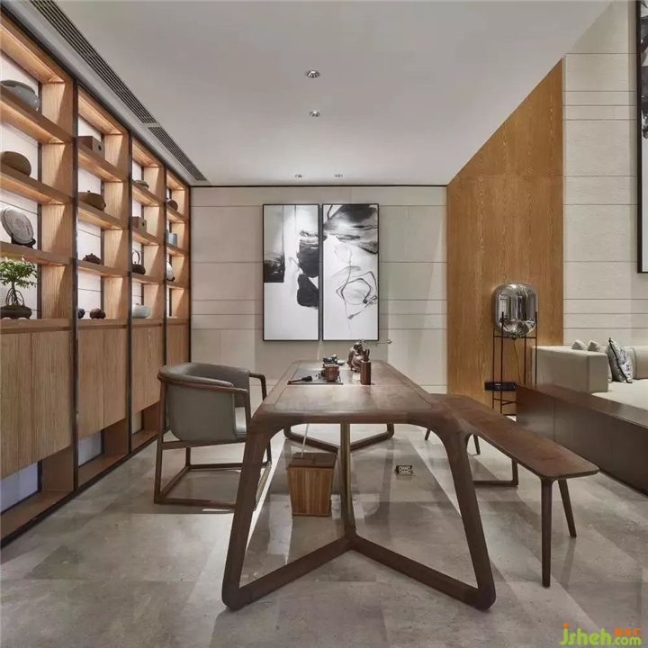 这个空间我们在运用的时候,更多的是用材质在诉说整个空间,在平面功能布局这一块,结合客户的需求,把它的功能布置好的同时,就是一种材质的运用在表达。