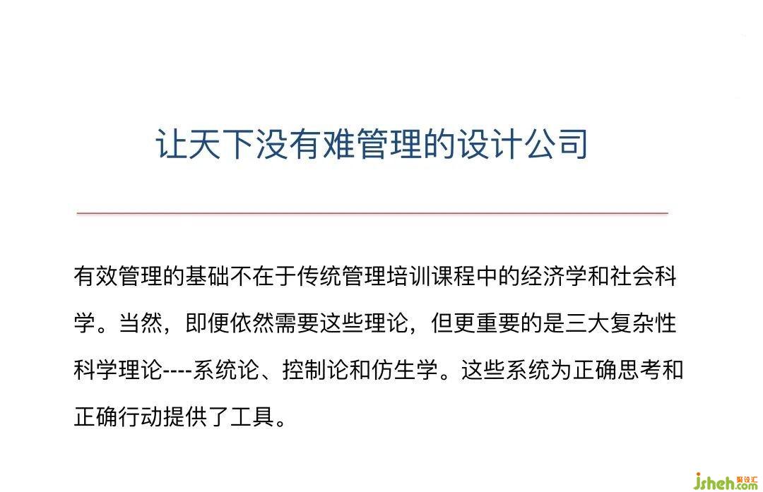 “让天下没有难管理的设计公司”,听着很耳熟但却是我给自己的目标。但凡创业开过公司的设计师,相信大家都有一个比较深的感触,经营好一家设计公司真的很不容易。