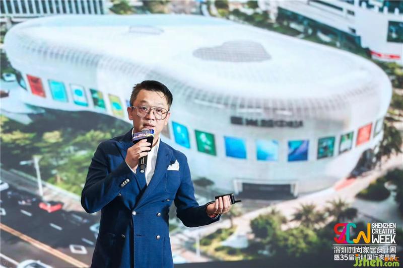 活动正式开始,深圳时尚家居设计周CEO Jacob上台讲话,这是今年我们第一次使用这个展馆,规模也是前所未见的,展会也是聚集了产业头部100多位设计师,这可以让家居产业和设计师们相互认识,对于认识这些头部设计师是很重要的,我相信这对大家都是很有帮助的。