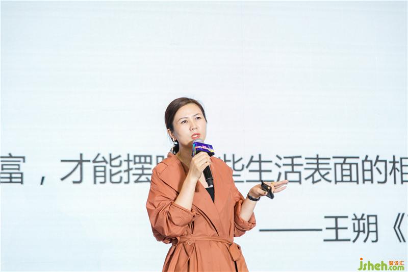 VTA微塔空间设计创始人及总经理向菲上台发表演讲,就“精神标签是美的原动力”这一话题表达了自己的看法,她认为未来的软装、家居产品是不是有更多设计上的思考,对于“美”而言,这个概念其实没有标准答案,不同的甲方、不同的区域文化、不同的决策人,他们对于“美”的诉求都是不同的,借用一句名言阐述了内心的精神丰富对于设计的重要性。