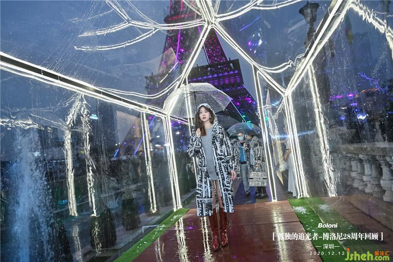 现场走秀与英国先锋设计师侯赛因·卡拉扬伦敦秀场无缝衔接。