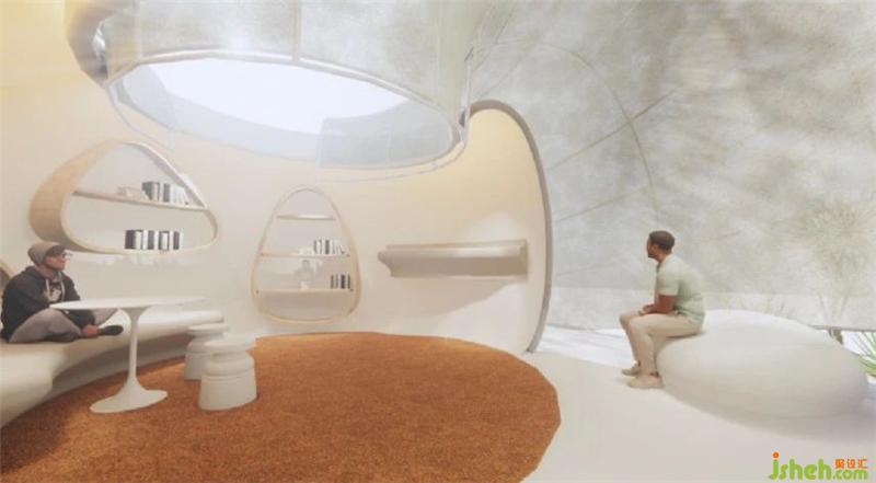 在这段探索旅程中,透过材质、音效、光影给参观者带来不同的感官体验,至此这个茧型建筑物被赋予生命力,一个善于激发想象力和交互感有机空间开始形成。