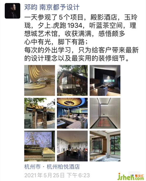 拜访了4位设计工作者,设计包含了:数学家,哲学家,心理学,诗人,对空间的尺度,在设计领域的热爱与执着,对公益事业的,以社会发展的前提,给予当下对美与空间对话,每个设计者都有自己的见解,走过,拜访过、亲身体验过我认为:热爱生活,对美与时尚,古典与现代,永不止步,设计一直在路上,踏过万水千山,回归每个项目本身及落地,回馈社会、甲方;为客户所想,做力所能及的落地,将效果完美呈现落地。