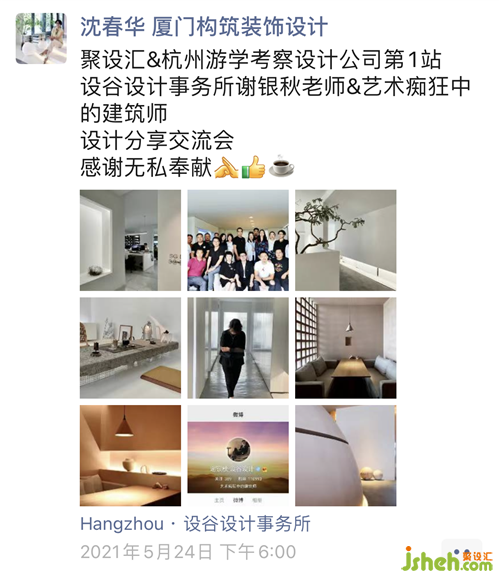 这一次的杭州游学对我来说 :① 主要是意在开阔自己的眼界 ,不要光做设计而设计,不要受限于某个区域。② 与来自于不通城市参加游学的设计师 提供了一个交流平台 三而行必有我师 通过交流能感受到哪些要提升。③设计公司的参观 主要是了解不同公司 不同的设计状态 如何切入项目的本身。最大的感受还是:设计师真的得 多出来看看人家怎么做的设计 还是眼界吧。也感谢聚设汇平台,能够很好的衔接起设计师与优秀的设计公司的对话。