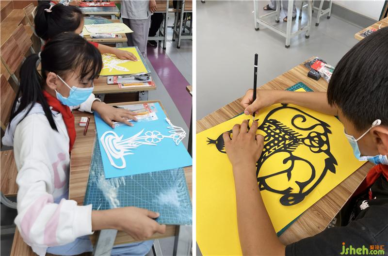 高尔夫球队的设计师们,这一群特别的“大孩子”也在现场与孩子们积极互动,无论是剪裁过程的辅导还是团结协作的创作,大脑与指尖的碰撞,激荡出奇妙的艺术火花,美学教育的引导作用也正在于此。