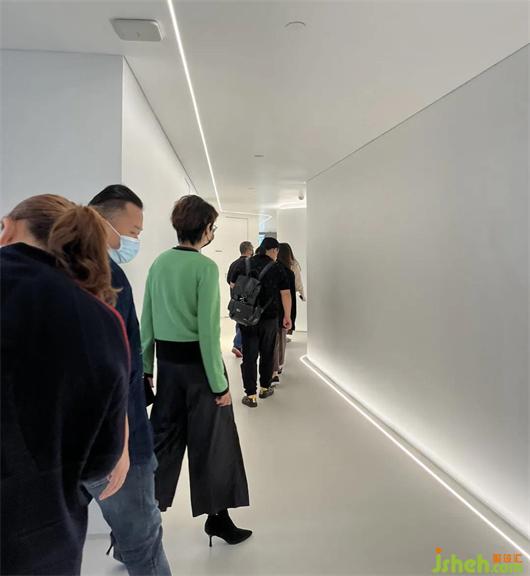上午,我们来到共生形态公司进行参观,一进入公司,映入眼前的是左右两面白、上下为黑的色彩搭配。通往公共办公区的走廊同样也是延用大片的白色,而办公区和会议室则采用黑色的主色调,简单的黑白搭配,对线条的把控,无需过多的修饰,即可呈现出空间的立体感,科技感十足。