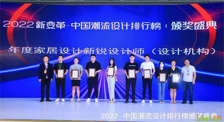 接下来就是激动人心的高光时刻。首先颁发的是2022中国潮流设计排行榜“年度领军人物”和“年度家居设计新锐设计师(设计机构)”两个奖项,室内设计大赛评委与特邀嘉宾相继上台为获奖设计师颁奖,并且合影留念。