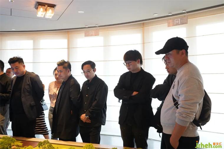阙程柯老师首先通过沙盘让大家直观感受楼盘三面环水、两河交汇的隐秘悠然与旧建筑翻新暗含的榫卯技艺。而进入公区宴客厅,放眼大局,开放式厨房吧台位于房间中心,既作为整体区域划分,同时紧邻就餐区拉近主客氛围;着手细节,2400k灯光色温设定、哑光地板抛光工艺与软硬交织隔断设计保证透气性都无不体现着私密舒适氛围与大师设计里的细节专微。