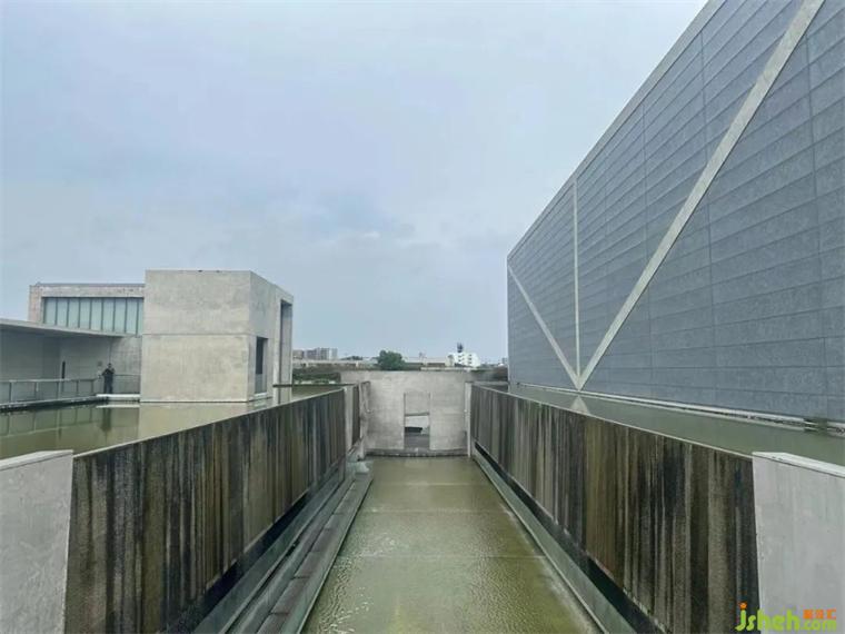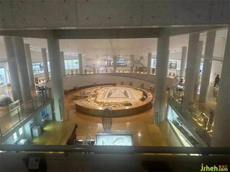 其构思是一座小山丘,通过它可以观览四周吉蔡文物出土区域。限预则形成了一个硕大无朋的合阶式广场,成功的创造出一个人与自然和人与人交流对话的场所。围绕博物馆四周布置了敢步小道,很好的组织了户外活动。两组坡道深深明入并穿过广场上的大台阶。