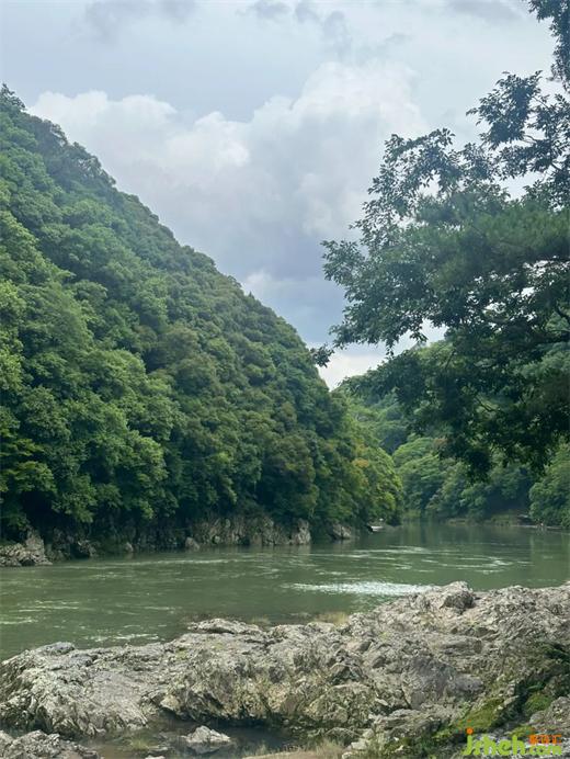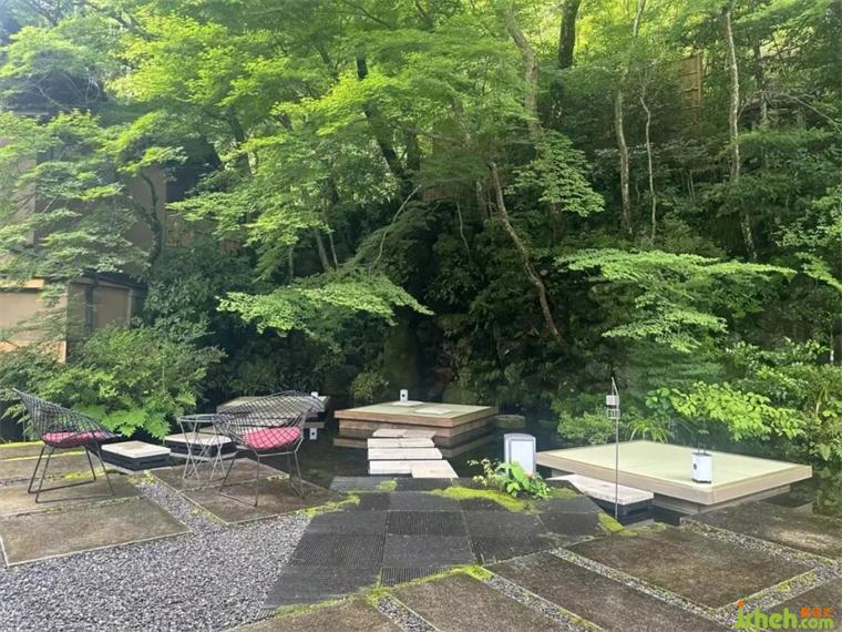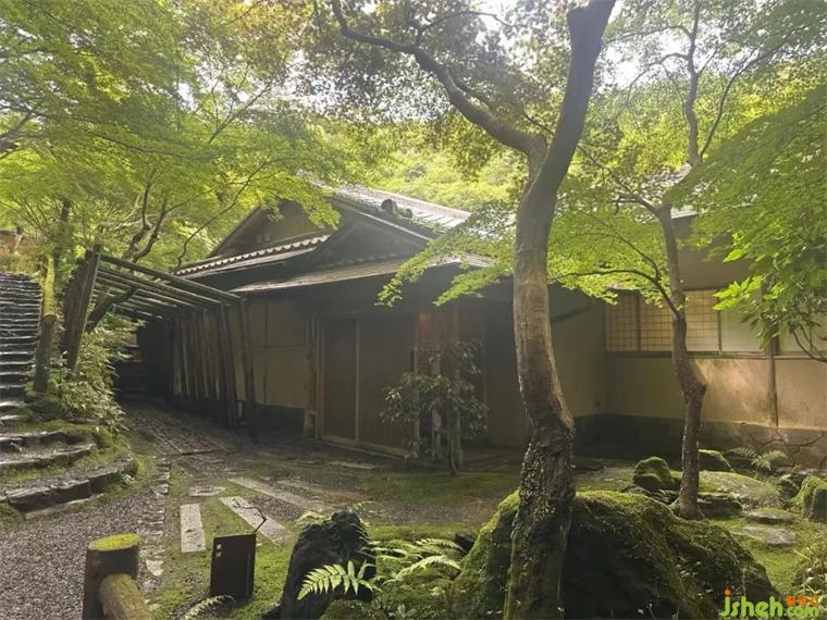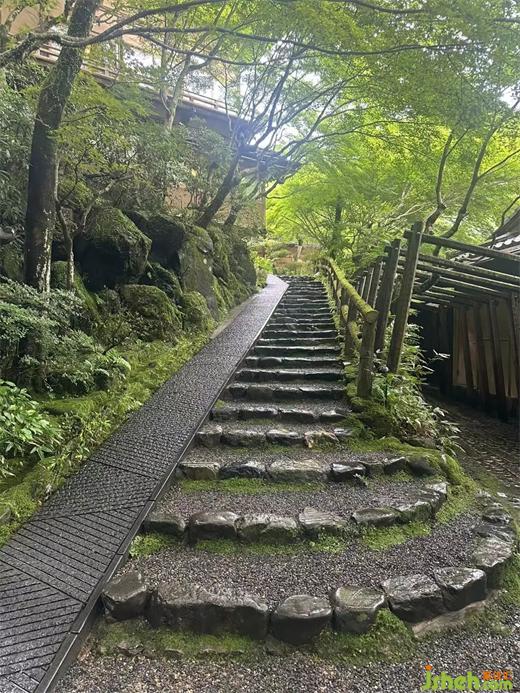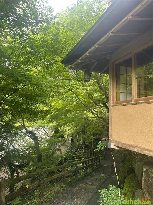 虹夕诺雅京都有专属的码头,住客需先乘船、再步行一小段山路,才能抵达酒店。这样的入场,可谓是仪式感满满。 河流作为曾经山里运送粮食,人们交通移动的通道,如今也是旅人追寻京都过往记忆的途径。前往酒店的路途虽然仅有15分钟,却是比平时感受更为浓密的15分钟。映入眼帘的,除了山还是山。河畔的虹夕诺雅京都,建造在景观保护区当中。但日本庭园的美丽,是在人工和自然的境界边上荡漾的。映射了人的审美意识的自然,就如同在清扫过的通道上,那引路般零零落落残留着的杜鹃花瓣。