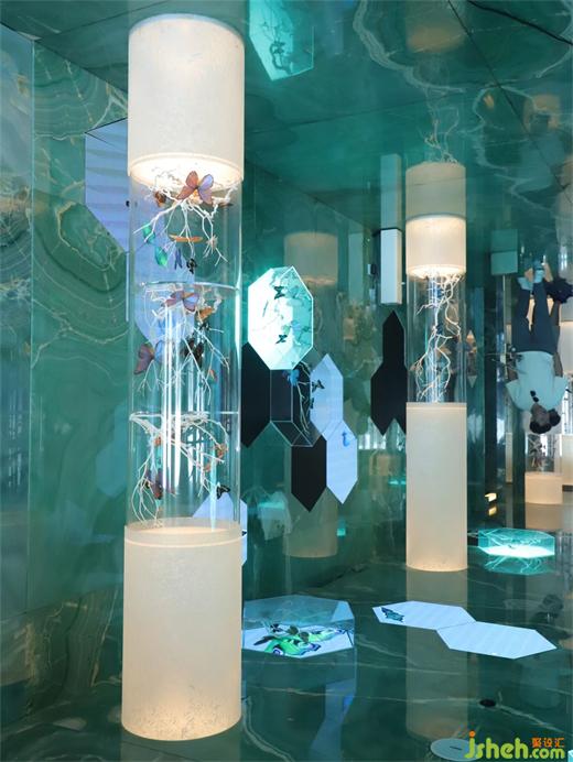 在快节奏的现代都市生活中,电梯厅花园如同一股清流,以光影的变幻莫测拥抱自然手作的纯粹与匠心,绿玉石的温润、玻璃的通透与翩翩蝴蝶共同编织出一个超现实般的沉浸世界,大量镜面的设计使人步入其中,即刻便感受到视觉与心灵的双重震撼,仿佛穿越至另一维度。