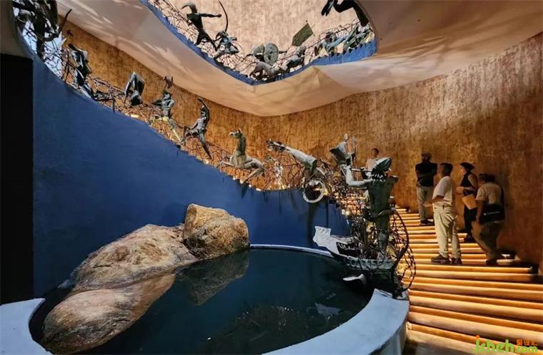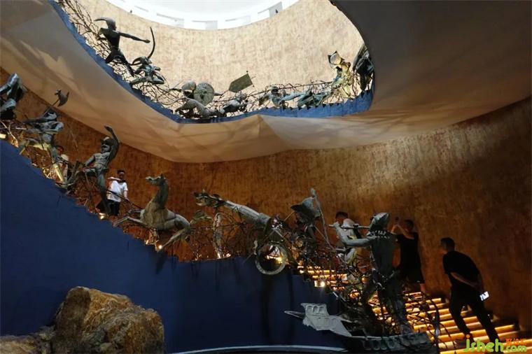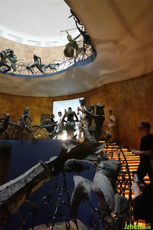 圆形旋转楼梯,顶部有天窗让阳光倾泻而下,而青铜铸成的正在激烈厮杀的僧伽罗武士雕塑一路沿着扶梯上升。整座楼梯于是成为一个凝固的瞬间:此刻建筑就是音乐,而灯塔就是教堂。