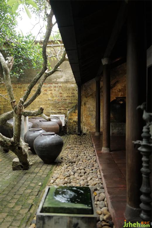 狭长空间横向局促,通常会尽量避免在横向上做复杂设计,但巴瓦偏偏在横向上设置了多重空间,中心庭院实际上有三个并列的小庭,中间是水庭,两侧分别是带有壁龛的休憩庭和装饰着雕塑的景庭;水池边的廊柱不是两排而是三排,其作用不仅界定空间,还增加了景深;站在任何一侧,都能看到廊柱、水池、屋檐、地面构成的多层画面;想象雨天坐在壁龛的沙发里,屋檐落下雨幕,该是怎样动人的景致啊。装修设计