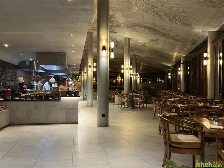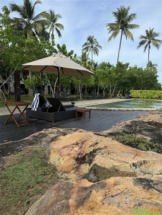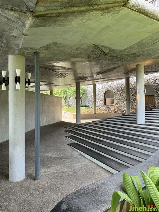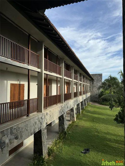 该酒店位于班托塔河于印度洋的入海口,一块转角基地之上,一面面朝印度洋,一面面朝班托塔河。