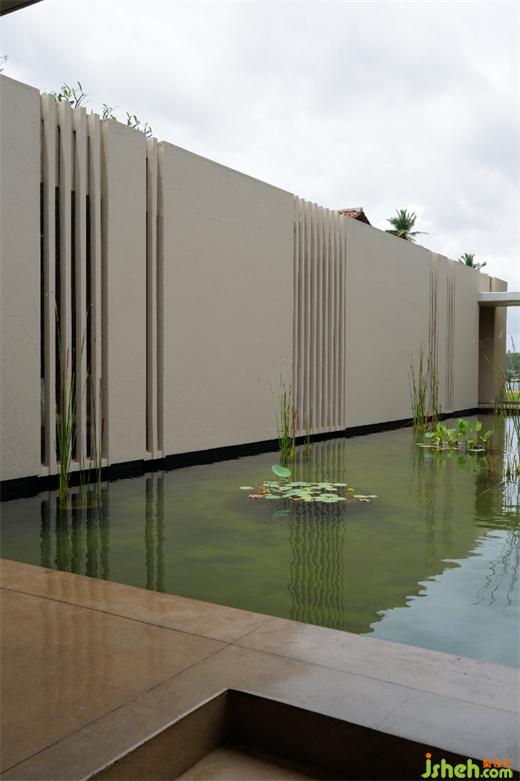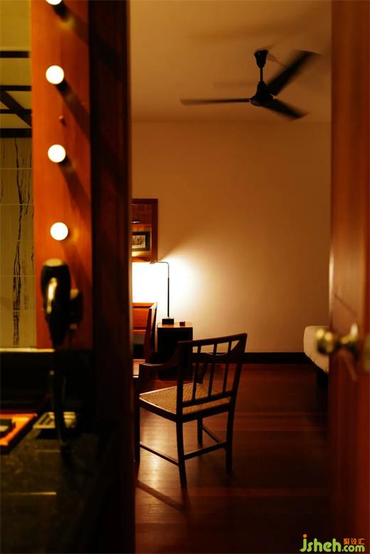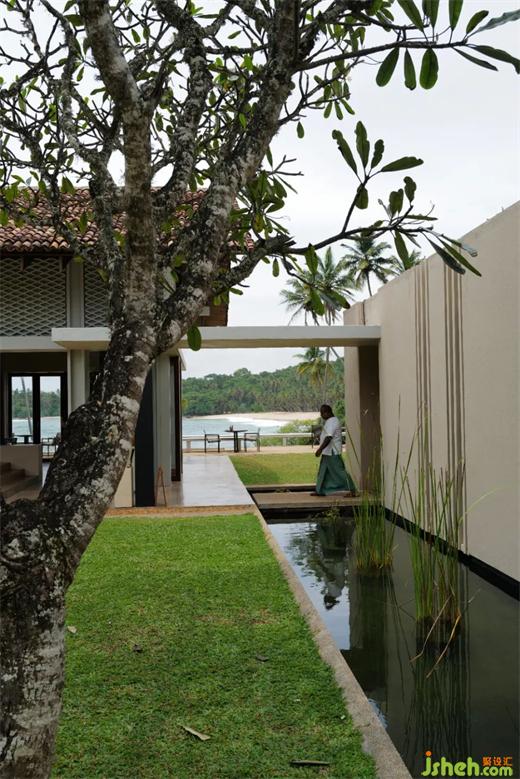 坎达拉玛遗产酒店四面都是植被,建筑外观被植被覆盖,堪称“消失的建筑”,巴瓦将建筑与环境融为一体的理念展现得淋漓尽致。酒店的客房部分很注重材质和陈列,没有造型和色彩,空间自然质朴,温馨放松。时而还有小猴子来阳台玩耍互动!整个酒店公共区域和走廊看不到一副装饰画,巴瓦认为周围的岩石、森林、水等自然就是画卷。