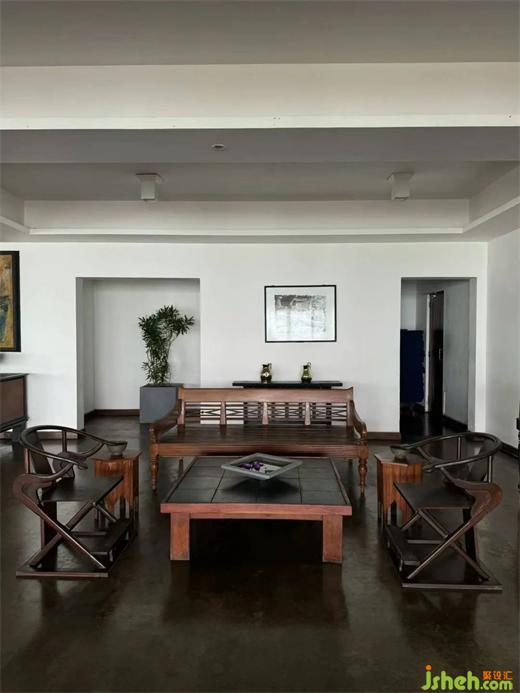 他充分利用了当地独特的地理位置优势,使得建筑和自然很巧妙的结合在一起,从而模糊了室内外的边界线。保留建筑结构最原始的梁柱,使其裸露在外面,使得大面积的采光和户外的景色能完完全全的融入到室内,弱化建筑本身而强调自然的重要性。