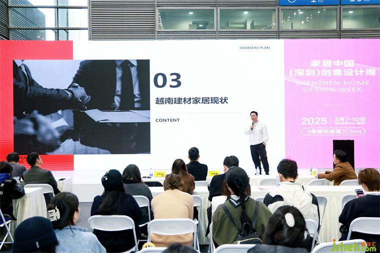 特邀嘉宾分享——香港环亚联合设计创始人杨志伟先生,带来东南亚/越南出海计划的主题分享。杨志伟先生表示,自2017年起,他便频繁前往东南亚进行考察和项目落地,涉及苏梅岛、普吉岛、曼谷等地的酒店项目。东南亚的产业结构以组装和生产为主,凭借其地理位置、贸易优惠、人力资源优势以及稳定友好的经商环境,旅游与投资相结合,已成为外国投资的新兴热点。特别是越南,有望成为下一个世界工厂。此外,越南建材市场规模庞大且需求旺盛,中国产品在当地广受欢迎,品牌建设、技术创新和渠道拓展均蕴藏着巨大机遇。杨志伟先生还分享了自己在越南潮玩市场的经验,通过“潮玩×地产×设计”的模式,以设计引领产业,抱团出海,共同搭建平台。