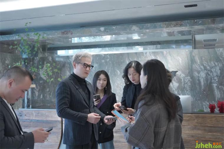 26号上午10点到达此次出行的第二站——集艾设计,九楼大厅中间一个手提箱中喷薄而出的白色丝网式设计别具一格,李阳介绍到这个造型叫“才思泉涌”,象征着集艾向全国各地输送创意,公司选址在虹桥机场附近也是考虑到更方便全国跑业务。