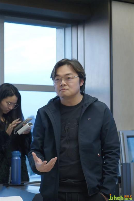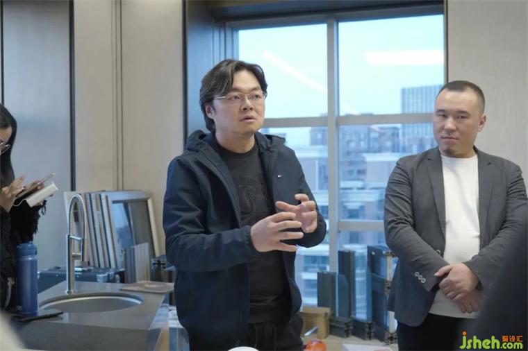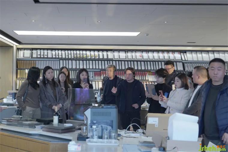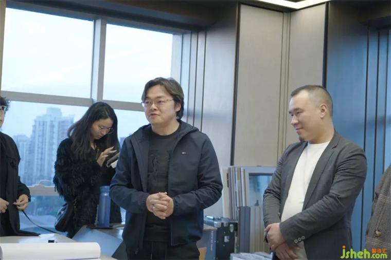 接着来到凌子达的办公室——整整两面墙的获奖证书震撼住了所有人,地上的大部分面积被各种各样的材料占据,俨然像一间库房。“我平时没事就喜欢看材料,这两张桌子现在全都堆满了”凌子达笑道。到办公桌前他向我们展示图纸,他认为设计图的重点是要落地,能够按图纸落地才能完成设计的意义,所以相比效果图,设计师应该把更多精力放在施工图上。