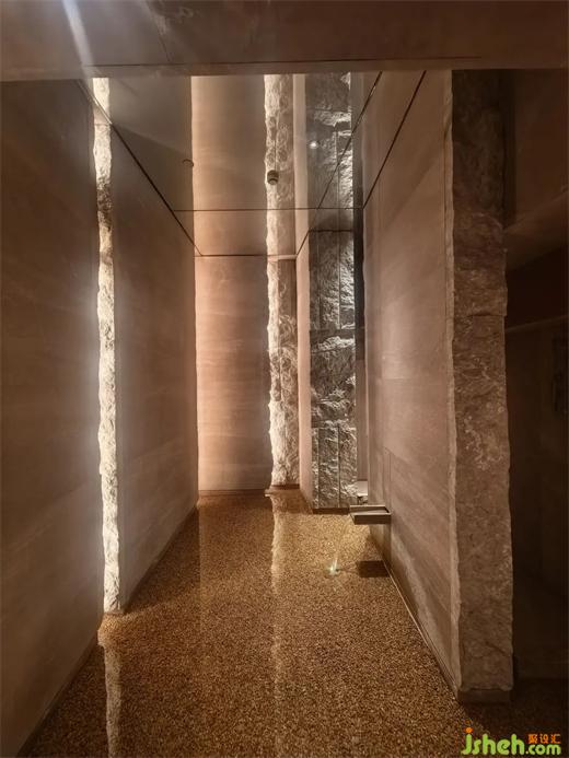 静安区中兴路699号,又一上海顶级豪宅坐落于此,售楼部大厅恢弘大气,富丽堂皇,金色的花束好似瀑布一般在楼梯间流淌。踏上自动扶梯,我们来到了艺术画廊一般的公共区。黑白交织的连廊设计,高级神秘,一件件艺术品置于两侧的壁龛中,暖黄色的灯光为设计披上金色的光晕。这是万科傲舍打造的“一间美术馆”会所,总共约2000平米,为业主带来了艺术展览、日咖夜酒、健身、社交、游泳、理疗等多功能服务。每个空间,都代表上海生活方式的浓缩——文化与时尚,烟火气与精致,活力与运动的交叠。