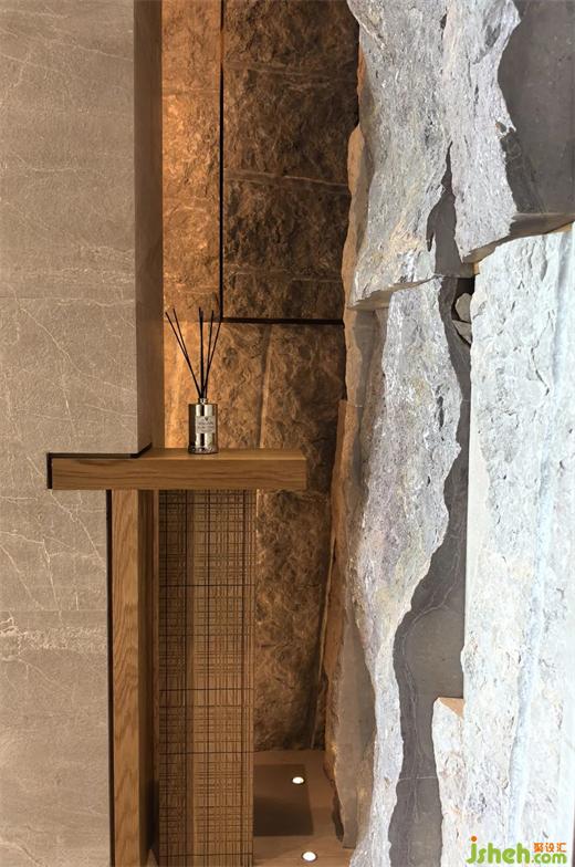离开公共区我们走向样板间,在入户门的位置,设置了专属于业主的镇宅位,玻璃壁龛可放置业主私人艺术收藏。室内约3.15米的层高让整个空间显得更加开阔大气。三面采光的设计,使得室内光线充足,拥有出众的景观和视野。在材质方面,地面选用天然奢石-宝格丽兰,十字拼接,西厨及壁炉选用经典法式奢石-山水白;在设计手法上,配置石材踢脚、墙面线条与叠级等西方古典语言,营造轻法风情。