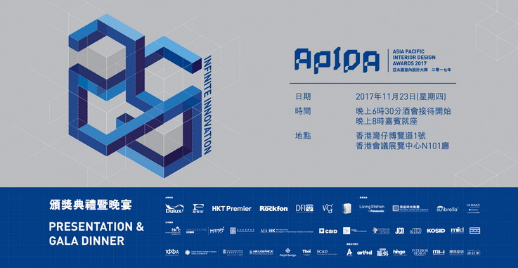 由香港室内设计协会(HKIDA)主办的第25届亚太室内设计大奖(APIDA)颁奖典礼将于2017年11月23日在香港会议展览中心拉开帷幕。当晚在超过300位来宾的见证下,将揭晓13个组别的金、银、铜等奖项得主。...