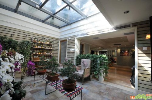 实际上,玻璃房子是建在地上的,一共有三层。每一层都与地面保持水平,只是外面的金属框与地面保持 70 度倾斜,恰好与斜坡屋顶垂直。...