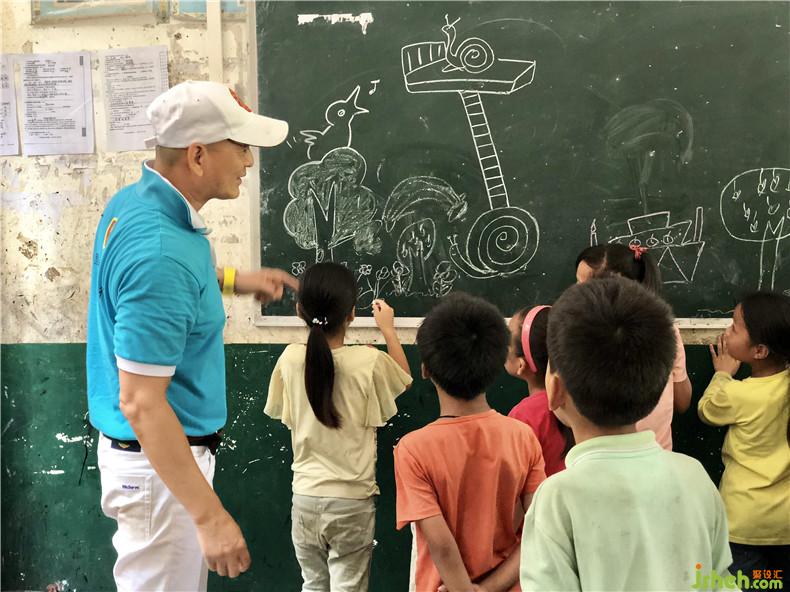 这些爱好也可让三米在助学活动中与孩子们愉快地互动。大学时曾是学院学生会的宣传部部长,记者团的团长的三米热衷公益,常利用假期到偏远山区助学。这为他的日后公益行动埋下了一颗种子。从2009年开始,三米和他的朋友坚持每年到乡下助学,每一次为10-18所乡村学校建立爱心图书馆,每个学校的书费将近3万块。提及助学之旅,他的脸上总是满足与快乐的。他说乡下小孩的学习环境很艰苦,但孩子的学习热情很高。他们在烈日下的铁皮房里上课、搬书、做游戏,唱歌等,但他的心不苦,反而很快乐。他希望这一生至少要去1000个学校帮助他们,如今的他每隔两三个月就会去一个地方,目前已经去了300多个学校了。在那里他会给孩子上美术、音乐还有性侵教育课程(儿童自我保护)。三米认为开设性侵教育课程(儿童自我保护)及增加孩子的自我保护意识对留守孩子来说极其重要。三米的美术课堂不似常规性教学,他不会教孩子画画的技巧,而是生动地跟孩子分享绘画的趣味,让他们在画画中收获快乐。三米的课堂是快乐和感动的,我相信这堂课会是这些孩子儿童时期最难忘的一堂课。他还打算在全国各地寻找一些优秀的美术、儿童主持和音乐老师,说服老师们把课程捐给山区小学。他还计划给山区小学捐电视机和开设视频课程,在每个学校建“视频管理”的群,在群上给老师讲怎么上这个课程,同时也会定期从都市输送课程过去,更新课程内容。三米的公益活动有着强大的号召力,每次公益之行大家的热情高涨、乐在其中。