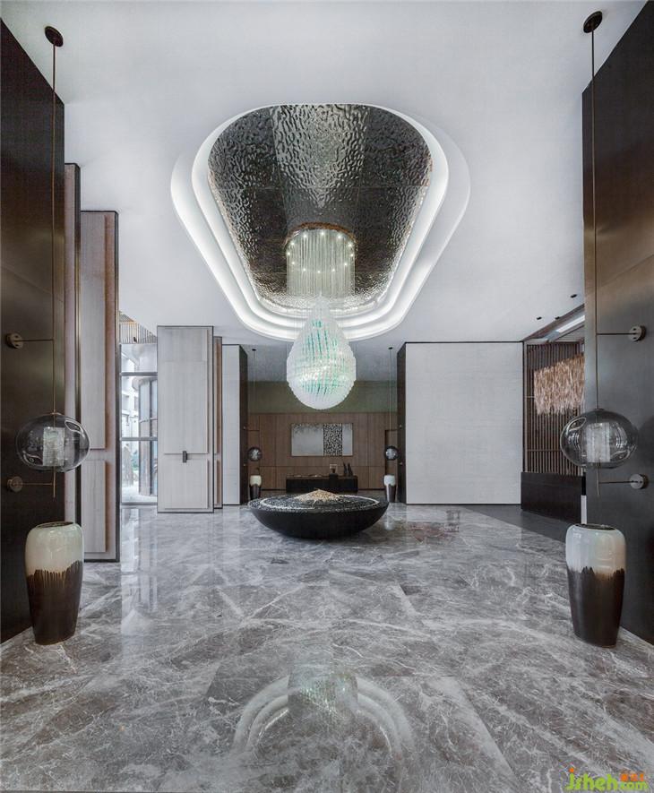空间打造的物理层面,王新时老师使用了最为廉价的建筑材料水泥作为主装修材料来打造“亚洲十大豪宅之一”前海豪宅项目的会所,经过团队的大量研发和实验,在保证水泥板的质量感、温度感的同时,又体现出精工级的细致。为了呈现出波纹的效果,他的设计团队甚至启用了国宝级的修复技术,使水泥板在拼接的时候做到不留缝隙。